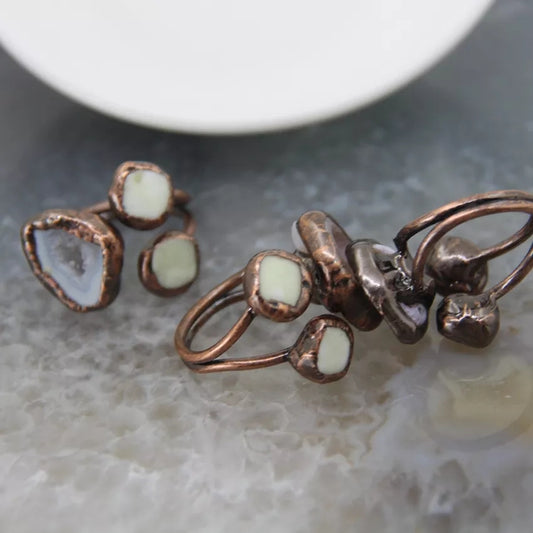 Copper 2 Stone Swirl Necklace Pendant. Amethyst × Jade natural gemstones. 👁❤💫